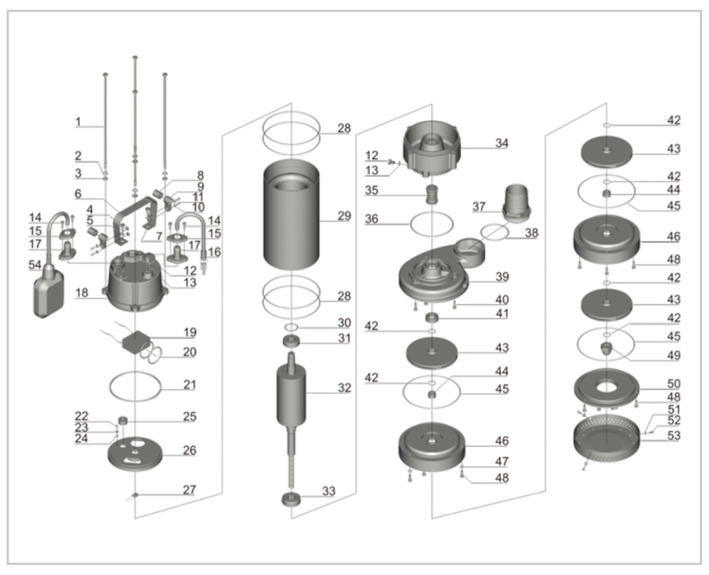 型號后加“F”表示裝配浮球開關(guān)的水泵